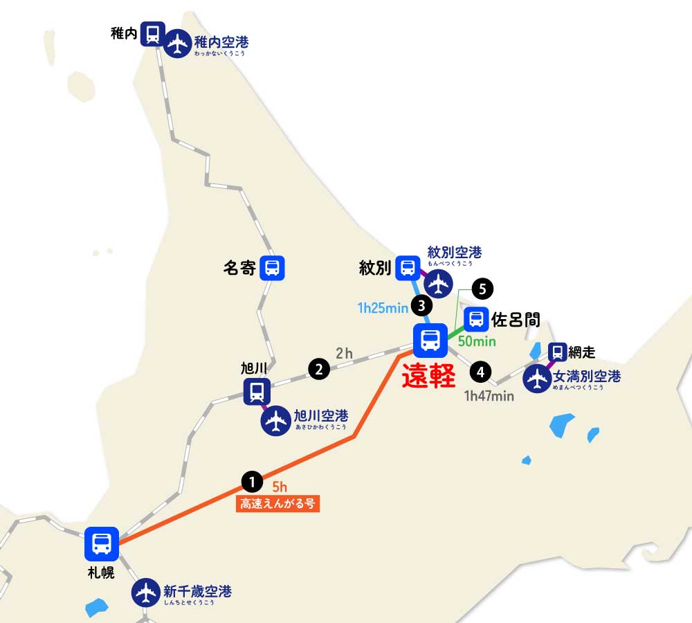 【札幌発:昼行】札幌駅前(17:05)→遠軽ターミナル(20:53)