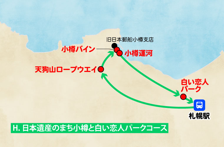 ※昼食代金・天狗山ロープウエイ代・旧日本郵船小樽支店入館料(H-1のみ)を含む。