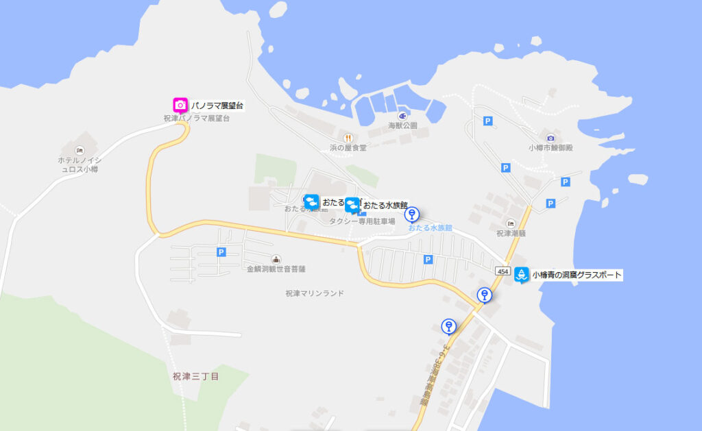 JR小樽駅下車→ 徒歩 10分→第3埠頭→海上観光船 20分→祝津港→徒歩10分