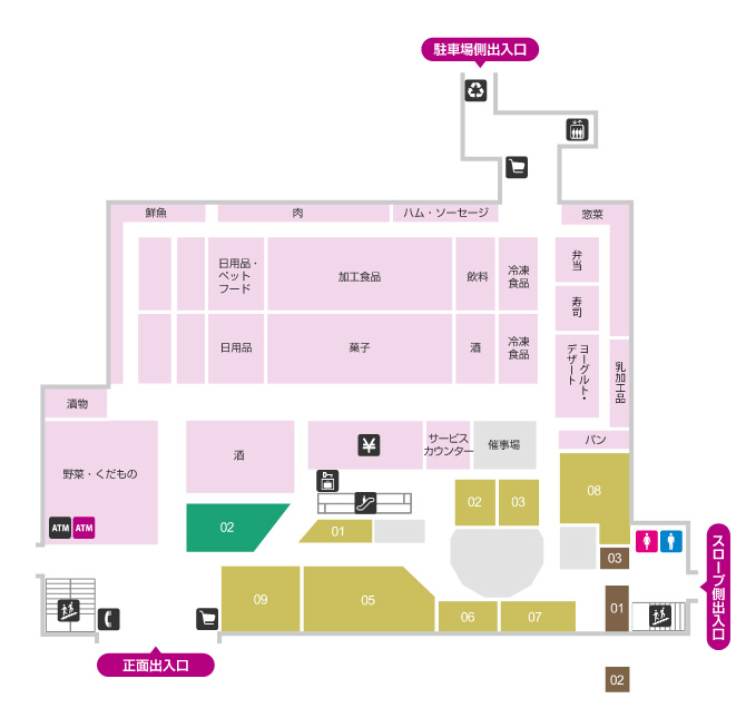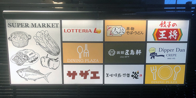 温泉街から徒歩7分。9:30p.m.まで営業中。お買い物もお食事もイオン湯川店で。ホテル に持ち帰ってもよし、フードコートで食べてもよし。