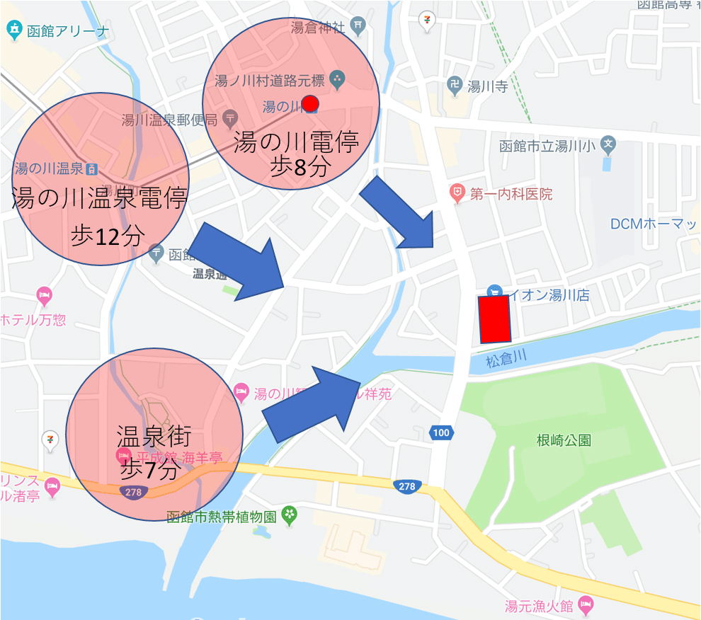 イオン湯川店は、湯の川温泉街から徒歩7分ほどの場所にあります。 銀聯カード、各種クレジットカードが使えます。また、便利なイオン銀行ATMがあるのでキャッシングが可能。 消費税の免税店です。お弁当やスイーツ、カットフルーツ、ドリンク類など、ホテルの部屋に持ち込んでもいいし、フードコートがあるので、そこで食べてもOK。何かと便利なイオンが湯の川にあります。
