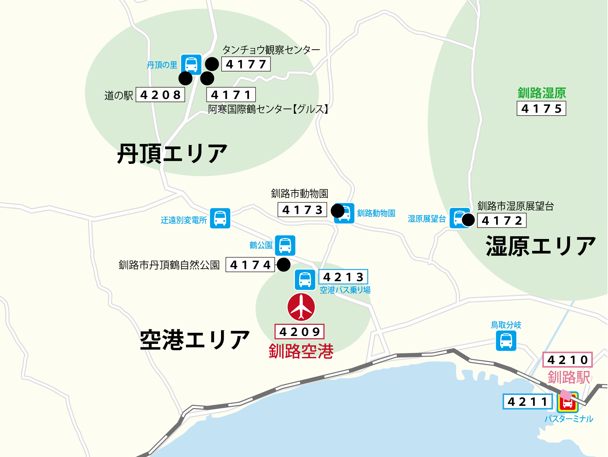 特に、阿寒湖周辺の徒歩&バスでの観光スポット、丹頂鶴エリアのバス観光、釧路市内の徒歩&バスでの観光スポットと、阿寒湖温泉BTを中心に周辺市町村へつながるバス情報をお知らせします。