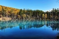 「富良野エリア紅葉MAP」をご覧ください。⑤青い池の美しさ。トドマツ、カラマツ、白樺などの木々が立ち枯れと池の青色、そしてこれらを包む紅葉によって池が浮き出るように見えます。⑥白鬚の滝は、青い池の源流で、周辺の紅葉と滝の青さが綺麗です。⑦・⑧の丘から見える景色は、紅葉のアンジュレーションです。